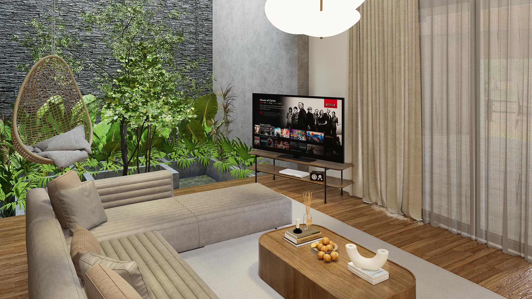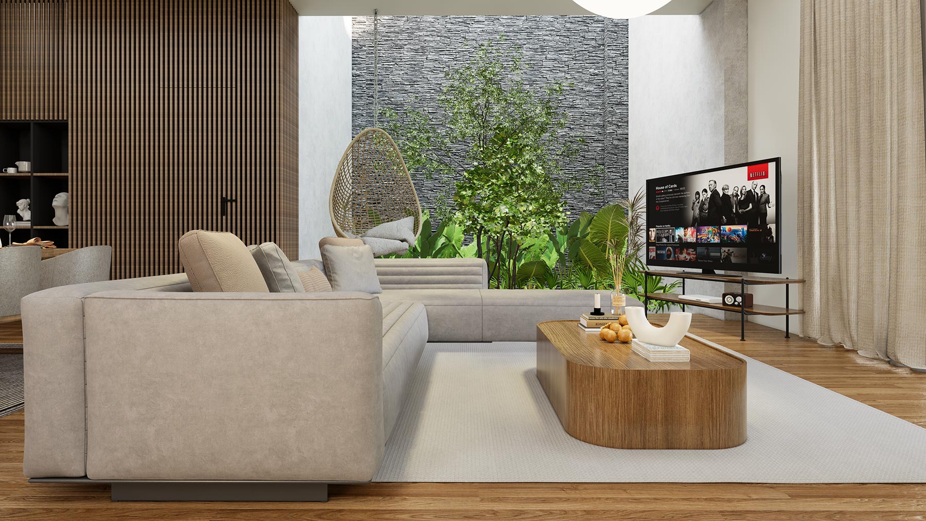The client approached THE DESIGN TEAM with a clear goal: to renovate their existing house into a modern, smart home that prioritizes sustainability and functionality. Their key requirements included a smart home system for enhanced convenience and energy efficiency, a green environment with ample natural light and lush greenery, and a spacious, open layout that fosters family interaction and relaxation. Our team worked closely with the client to bring this vision to life, ensuring every detail aligned with their goals for a stylish, functional, and eco-conscious residence.