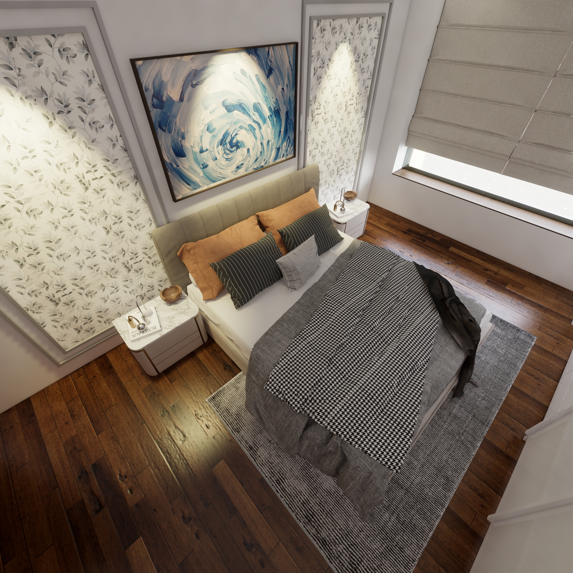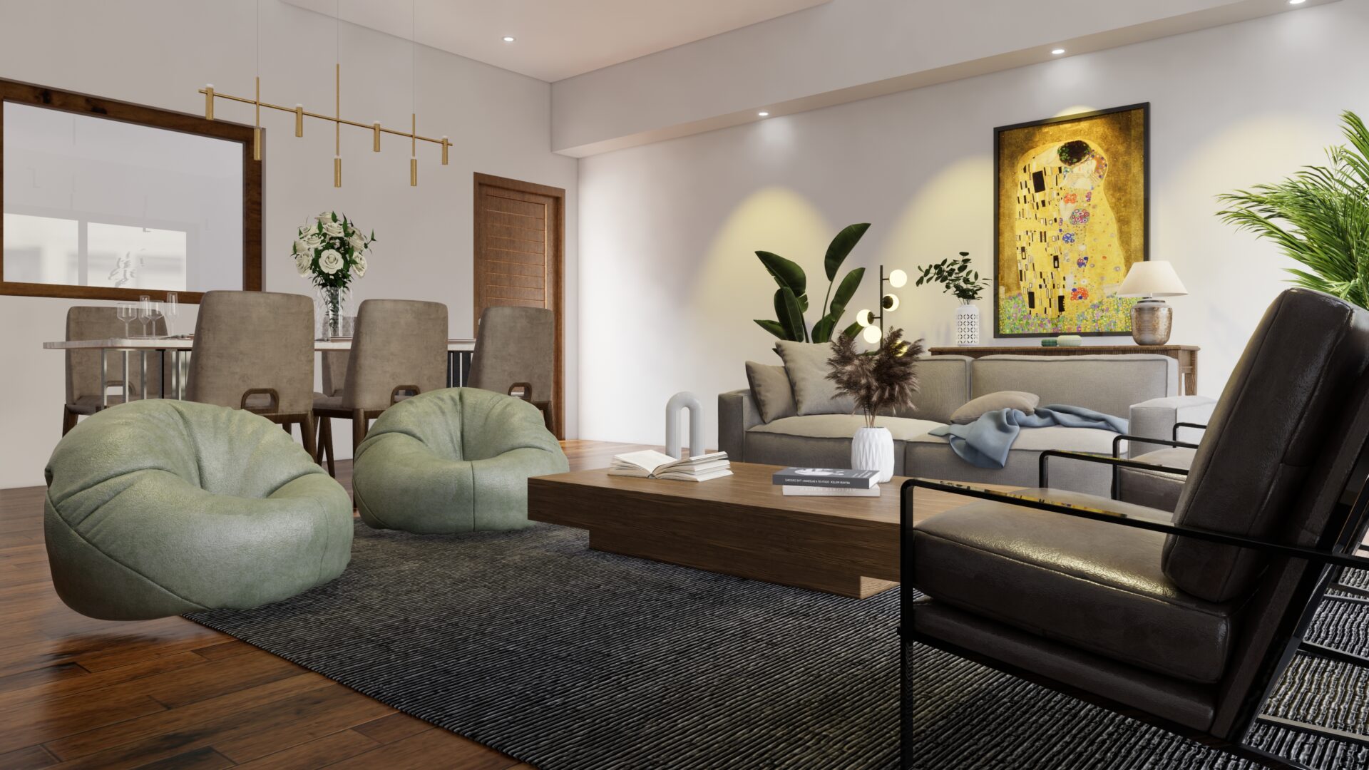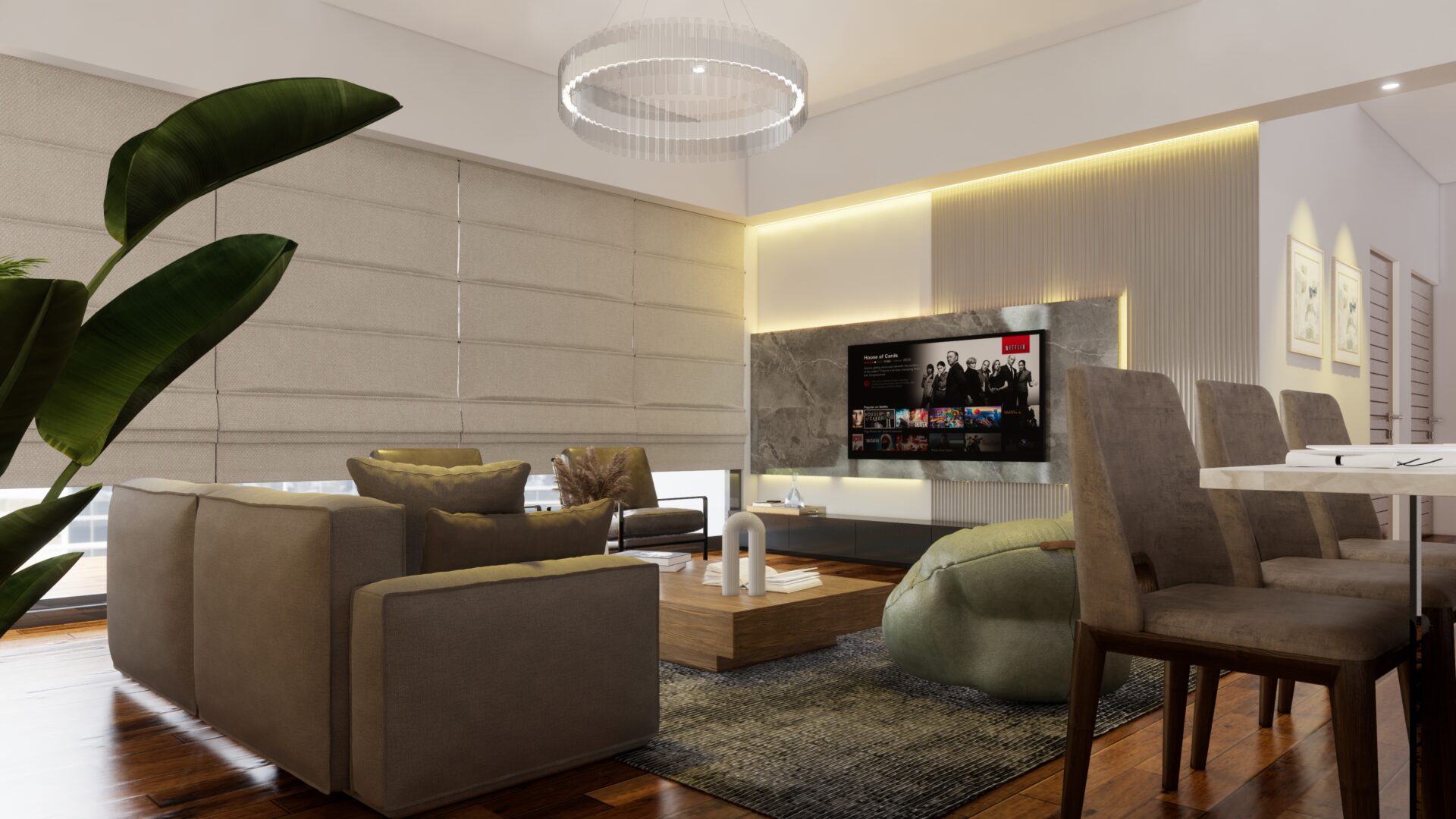 The client approached THE DESIGN TEAM with a clear goal: to create a modern residence that maximizes functionality and aesthetics while adhering to a strict budget. Their key requirements included a modern aesthetic that reflects contemporary trends, a cost-effective design without compromising on quality or style, and efficient use of the 1,200 sq. ft. space to accommodate all essential areas. Our team embraced this challenge, delivering a design that balances affordability, innovation, and elegance through smart planning and creative solutions.