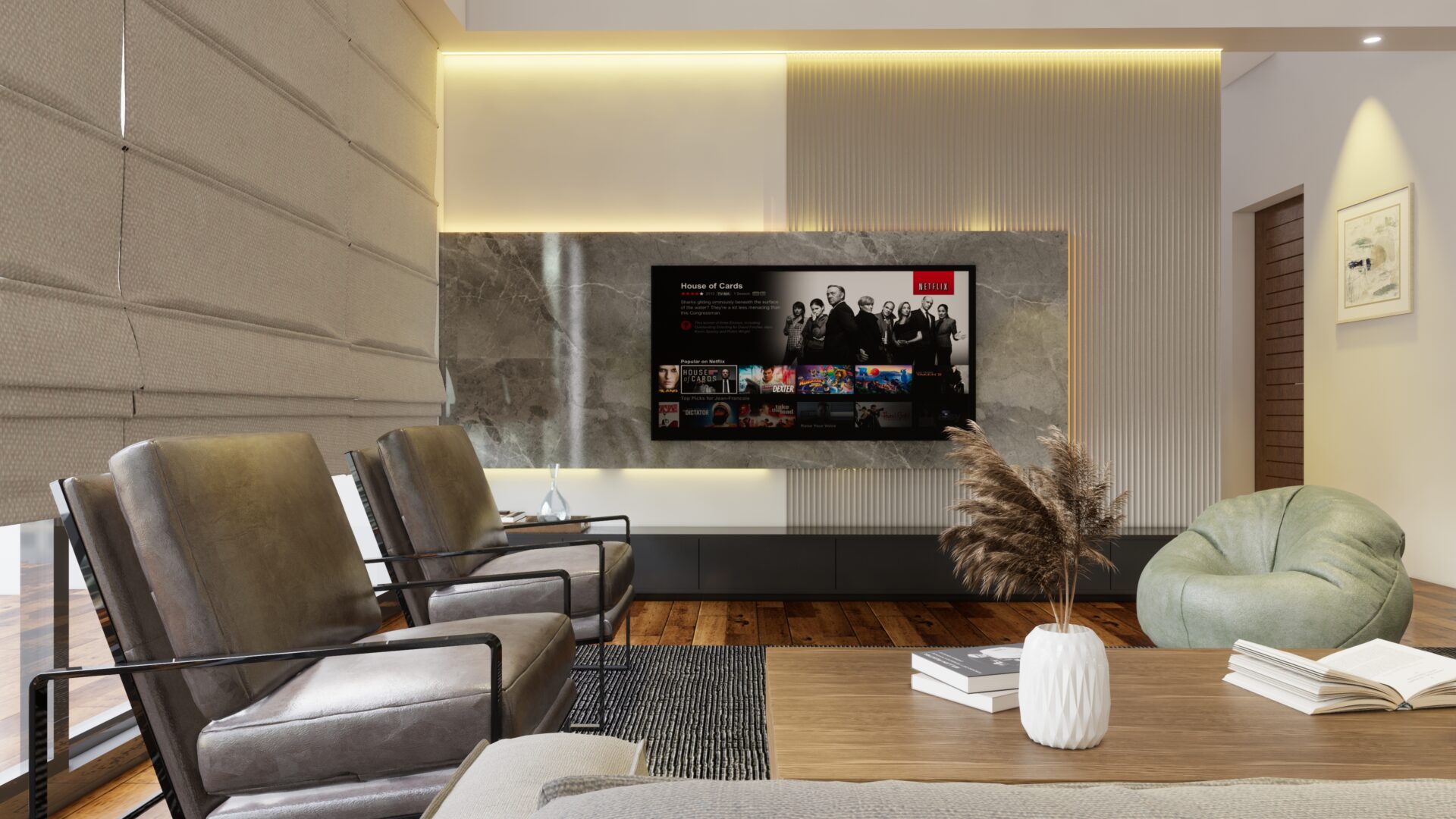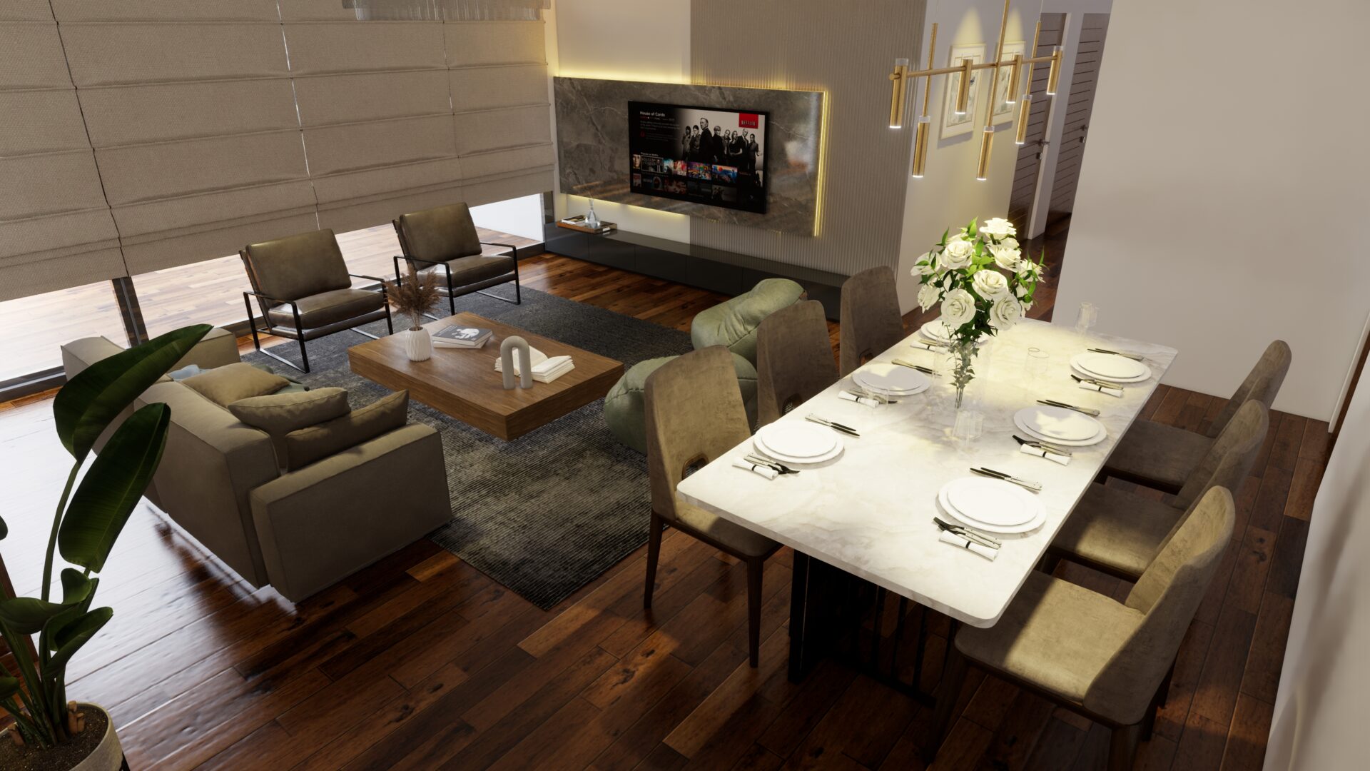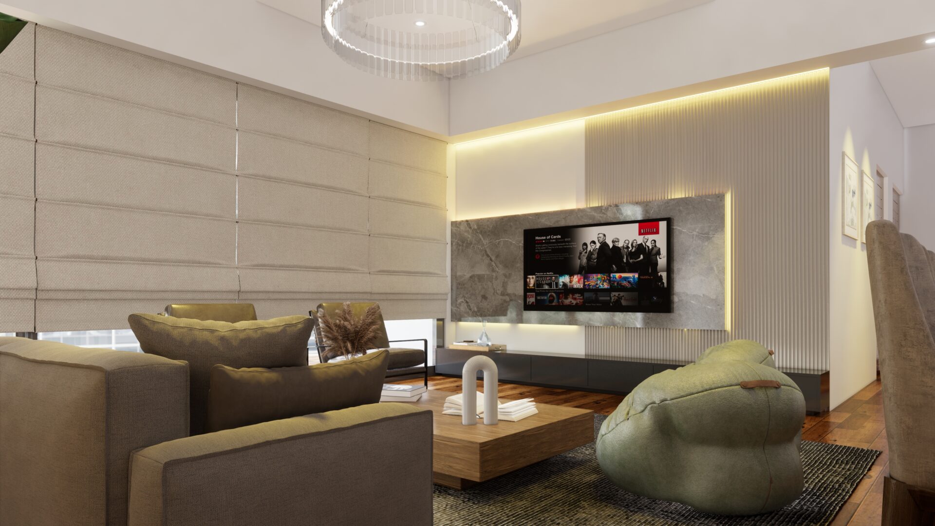 The client approached THE DESIGN TEAM with a clear goal: to create a modern residence that maximizes functionality and aesthetics while adhering to a strict budget. Their key requirements included a modern aesthetic that reflects contemporary trends, a cost-effective design without compromising on quality or style, and efficient use of the 1,200 sq. ft. space to accommodate all essential areas. Our team embraced this challenge, delivering a design that balances affordability, innovation, and elegance through smart planning and creative solutions.