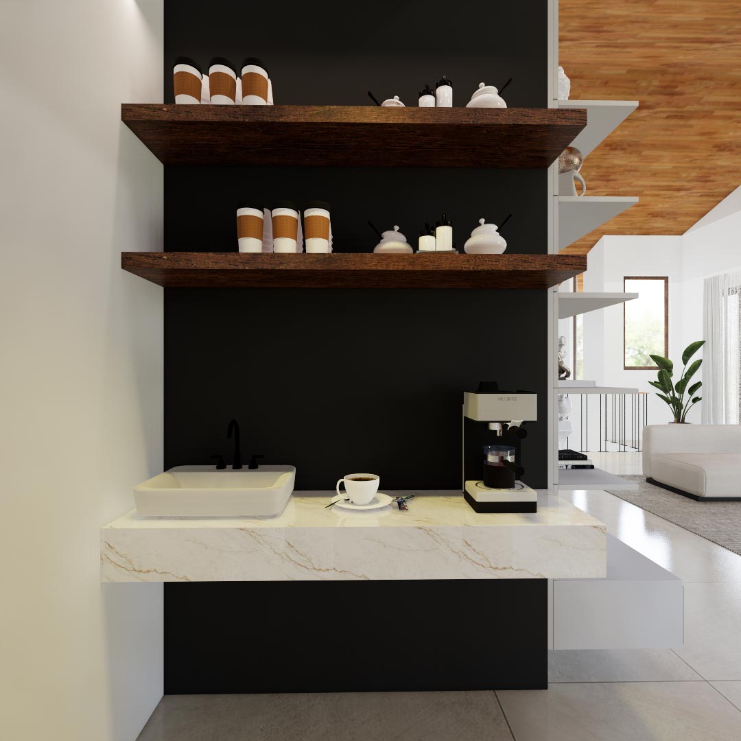 One of the main challenges was ensuring that the 5,000 sq. ft. space was utilized efficiently without compromising on the modern aesthetic. To address this, we implemented creative solutions such as an open layout for the living, dining, and kitchen areas to maximize space and encourage family interaction. The use of marble walls and steel furniture added a touch of sophistication while maintaining a cohesive modern look. Each area was carefully planned to ensure functionality—for example, the TV lobby was designed as a cozy entertainment space, while the office room provided a quiet workspace within the home. The inclusion of both an open kitchen and a wet kitchen catered to the client’s need for versatility in cooking and entertaining.