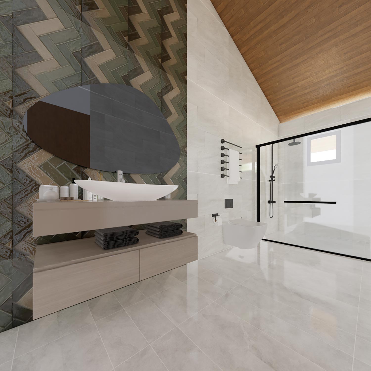 • Marble Walls : Chosen for their luxurious finish and ability to add visual interest.