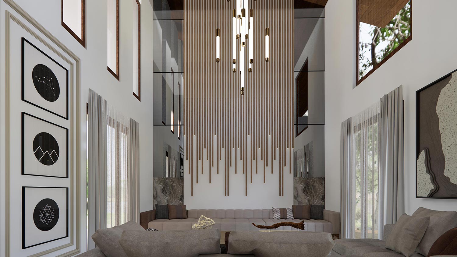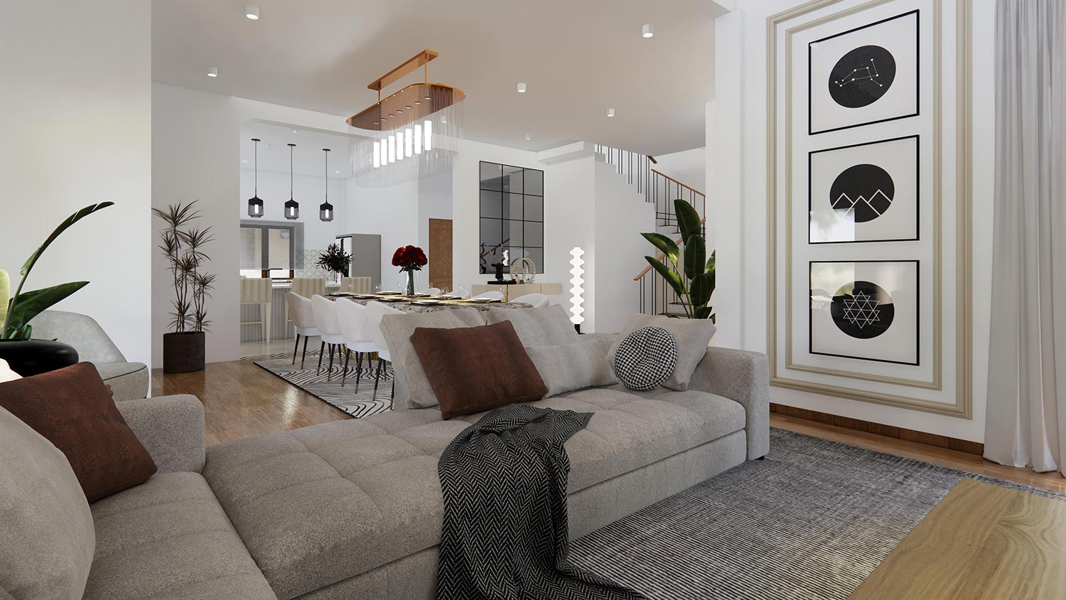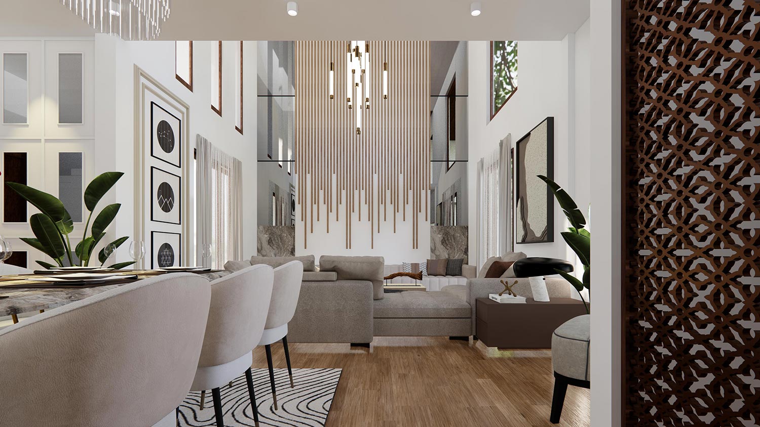 The client approached THE DESIGN TEAM with a clear goal: to design a modern residence that reflects contemporary trends while ensuring comfort and practicality for everyday living. Their key requirements included a spacious and open layout to foster family interaction and relaxation, high-quality materials and finishes to enhance the home’s aesthetic appeal, and dedicated spaces for entertainment, work, and relaxation. Our team embraced this vision, delivering a design that balances luxury and functionality through meticulous planning and innovative solutions.