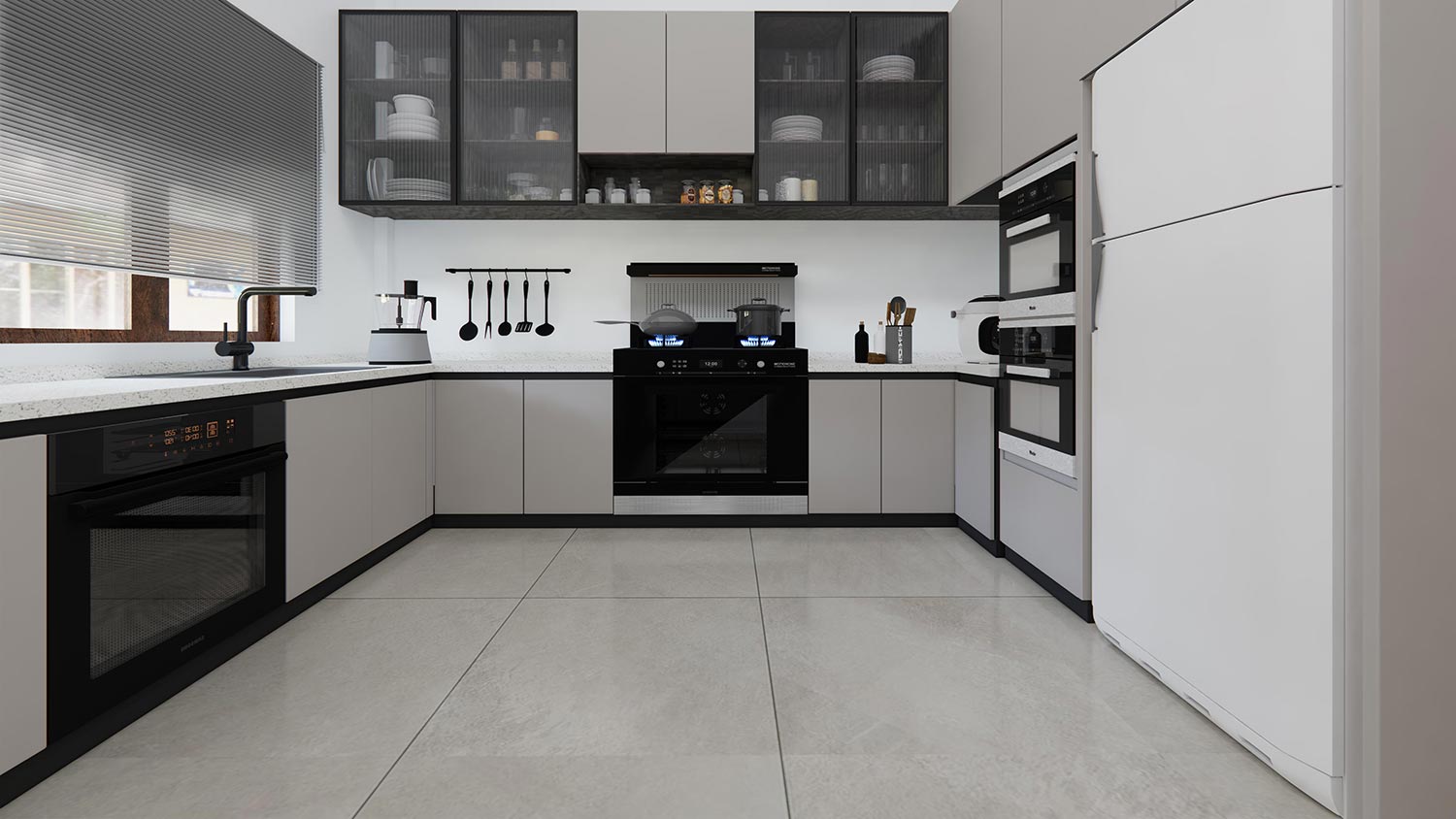 • Open Kitchen Design : Combines style and functionality with ample counter space and storage.