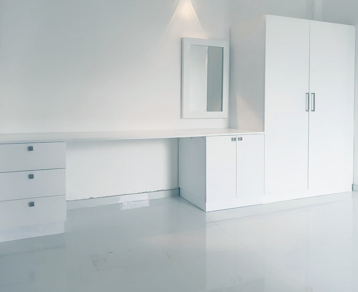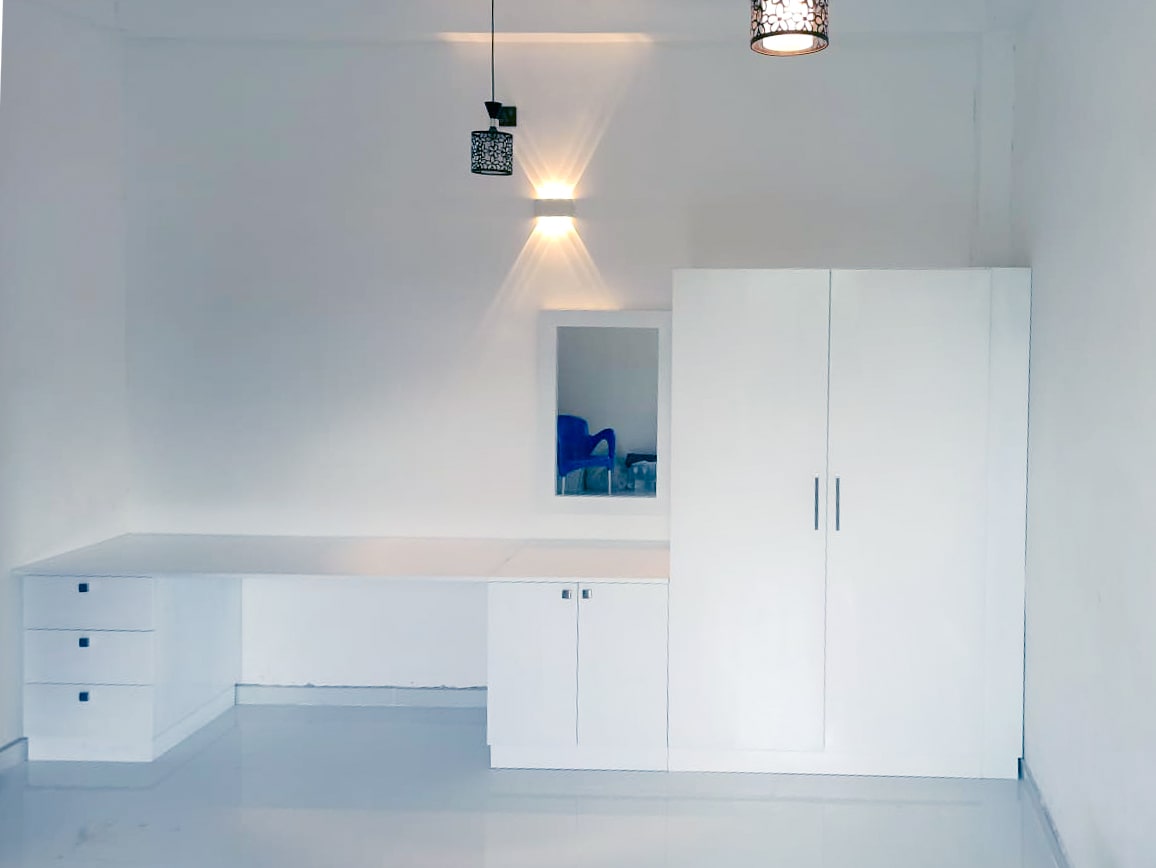 Located in the serene town of Ratnapura , Ms. Priyadarshani's House showcases a beautifully crafted children’s room that combines functionality , aesthetics , and durability . This project involved designing and installing study tables , dressing tables , and wardrobes using treated mahogany with a white finish , ensuring a cohesive and elegant look while overcoming structural challenges. The result is a harmonious blend of practicality and style, perfectly tailored to the client’s vision.